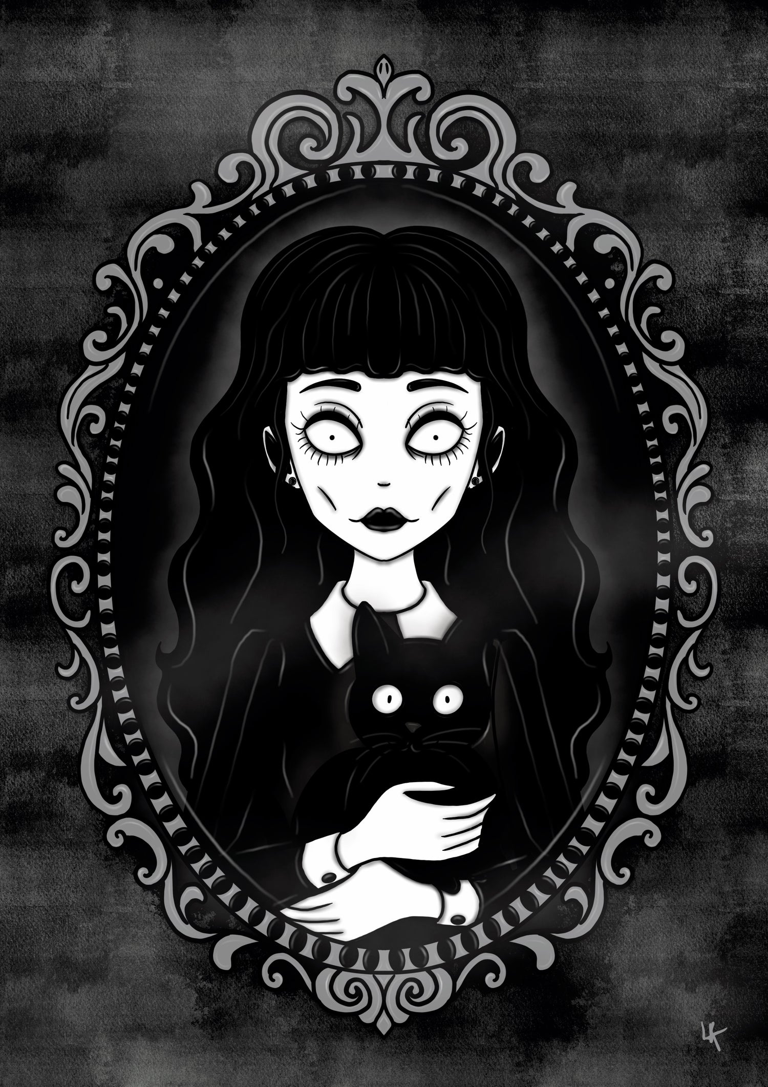 Je crée et fabrique seul des illustrations et objets de papeterie pleins d'histoire, avec des personnages aux allures gothiques, pour les âmes curieuses de découvrir un univers magique !
