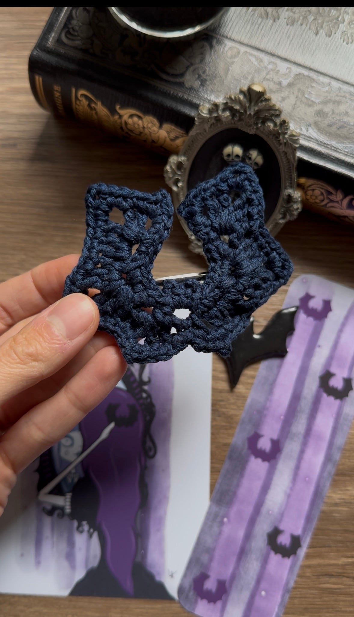 - 1 pince à cheveux chauve-souris bleue nuit.